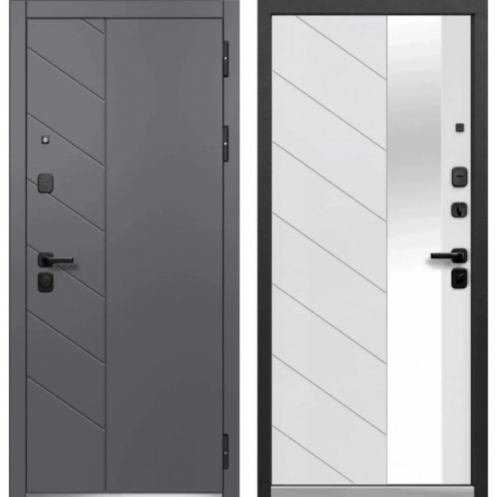 Дверь Luxor Пирамида Зеркало Сатин графит - Эмалит белый
